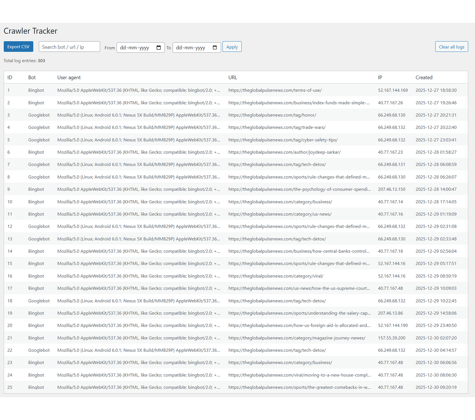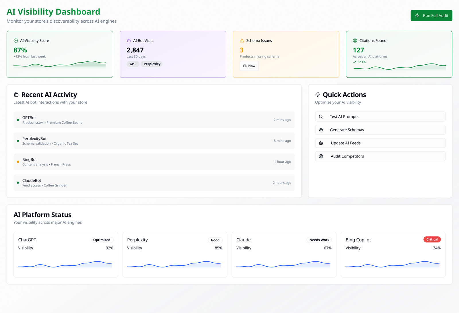 Why you need it:- You can't manage what you don't measure. Knowing which bots are visiting helps you understand your visibility.