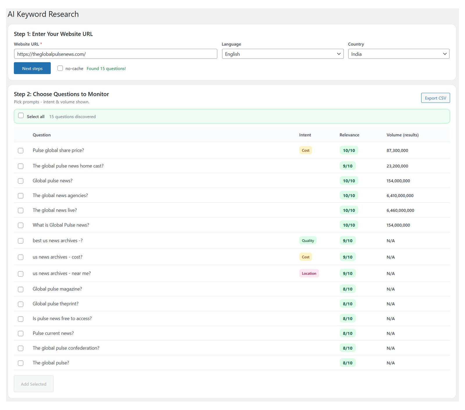 How it works:- You enter a question (e.g., "What is the best plugin for X?"). The tool analyzes your data to predict if your brand would be mentioned in the answer.